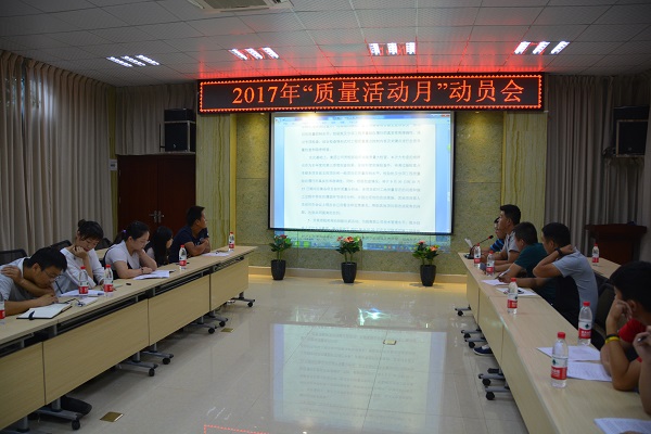 根據(jù)集團(tuán)公司“質(zhì)量活動(dòng)月”方案的精神和內(nèi)容,為進(jìn)一步加強(qiáng)鐘鑫公司質(zhì)量品質(zhì),切實(shí)組織開展好2017年“質(zhì)量月”活動(dòng),努力在全公司營造“重視質(zhì)量、追求質(zhì)量、崇尚質(zhì)量、關(guān)心質(zhì)量”的氛圍,廣泛開展質(zhì)量安全宣傳活動(dòng),優(yōu)化質(zhì)量發(fā)展環(huán)境。鐘鑫公司2017年度“質(zhì)量活動(dòng)月”活動(dòng)動(dòng)員會(huì)于2017年9月8日下午17時(shí)在公司一號(hào)會(huì)議室順利召開。鐘鑫公司總經(jīng)理涂軼銘,副總經(jīng)理徐浩,各項(xiàng)目經(jīng)理等共30余人參加本次動(dòng)員會(huì)。會(huì)議由公司質(zhì)安部部長(zhǎng)楊潔主持。