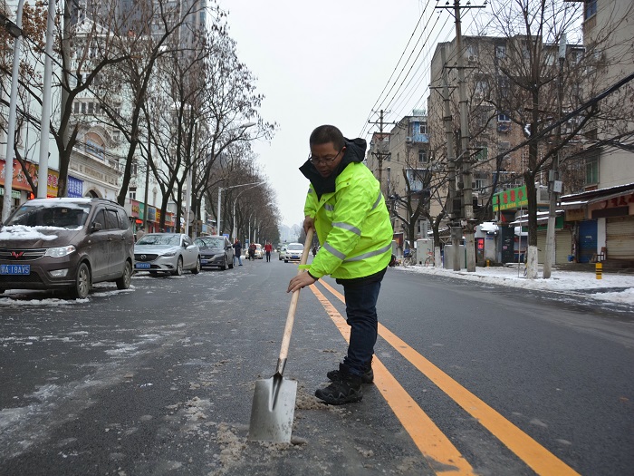指針來到下午14時,鐘鑫市政“鐵軍”在公司領(lǐng)導(dǎo)的帶領(lǐng)下,搶險隊伍馬不停蹄地來到了國博大道。勘探完現(xiàn)場之后立即做出工作部署,將全體人員和機械按照路段劃分為三個路段進(jìn)行除雪破冰。下午的國博大道,寒風(fēng)凜冽,氣溫格外寒冷。好在鐘鑫公司的女同志們不顧嚴(yán)寒,精心準(zhǔn)備了充足的姜湯和熱騰騰的包子,為饑寒交迫的搶險隊伍送來了熱飲和食物,姜湯驅(qū)除寒氣,食物更暖人心,隊伍在下午18時順利完成了清掃任務(wù)。期間,方紫微帶領(lǐng)部分人員火速馳援馬滄湖路進(jìn)行路面清掃,擼起袖子和大家伙兒一起干!清掃完畢的馬滄湖路煥然一新。