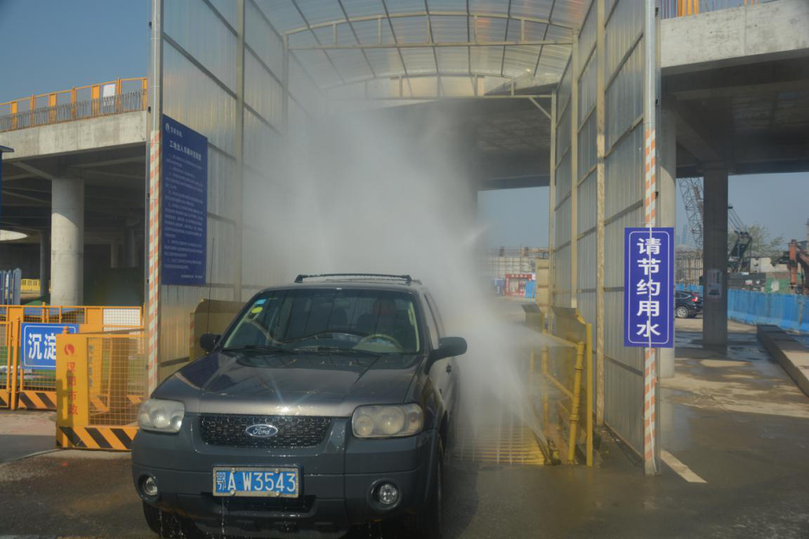 項目部為嚴(yán)格踐行安全文明施工,在項目大門沿路一側(cè)圍擋采用了6米高的綠植拼裝式圍擋,外觀統(tǒng)一美觀,能有效的起到隔音降塵作用。在靠近施工區(qū)路面圍擋一側(cè),綠化帶內(nèi)設(shè)置了綠植和文明宣傳標(biāo)語。為全面嚴(yán)格落實“六化”標(biāo)準(zhǔn),項目部成立文明施工專班,每天定時對工地大門、現(xiàn)場便道等進行清掃和灑水降塵,確保周邊整潔美觀。項目大門處還布置了全自動洗車棚及車輛門禁檢測系統(tǒng),實現(xiàn)車輛進出沖洗干凈,杜絕帶泥上路。