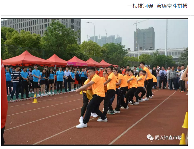 ? ?2019年4月30日,值五四青年節(jié)來臨之際,為激發(fā)職工運(yùn)動(dòng)熱情,展現(xiàn)市政青年昂揚(yáng)向上的精神風(fēng)貌,漢陽市政集團(tuán)公司在漢陽區(qū)全民健身中心田徑場(chǎng)成功舉辦了“喜迎軍運(yùn)會(huì) ?激揚(yáng)青春 ?職工運(yùn)動(dòng)會(huì)”。