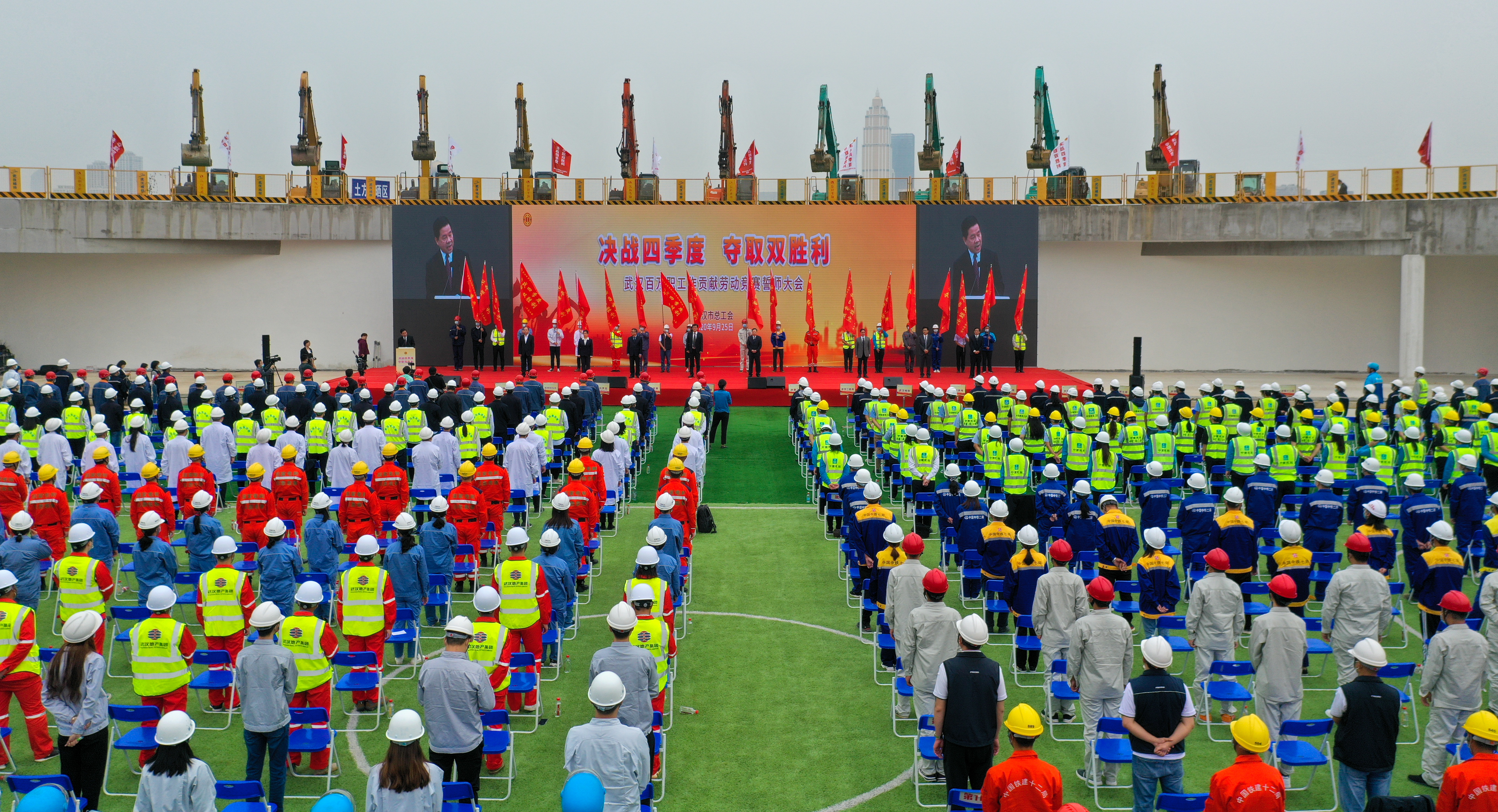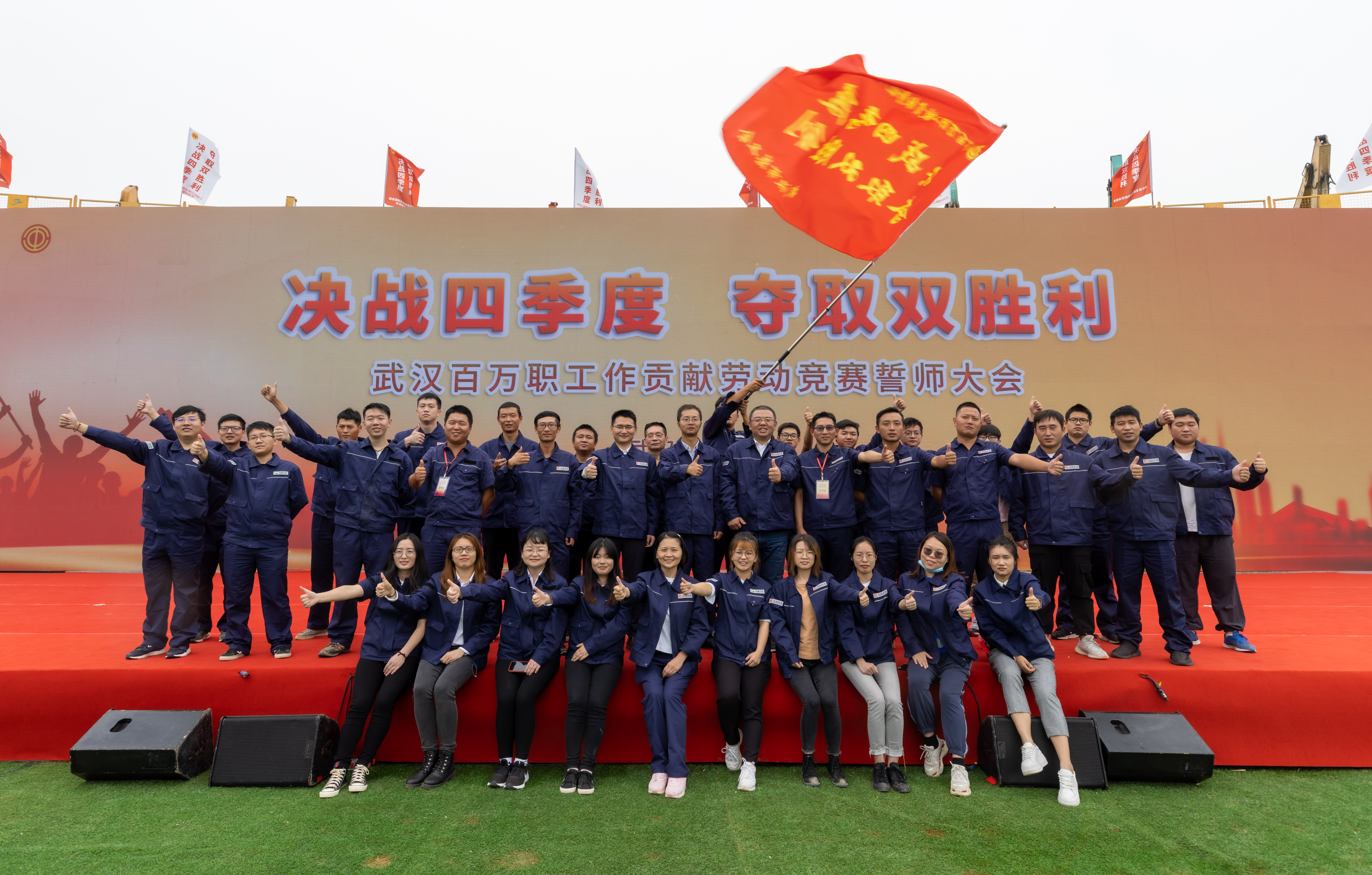 武漢,曾是新冠肺炎疫情的“風(fēng)暴眼”,如今成為中國(guó)經(jīng)濟(jì)疫后重振的風(fēng)向標(biāo)。在全市深入貫徹學(xué)習(xí)習(xí)近平總書(shū)記在全國(guó)抗擊新冠肺炎疫情表彰大會(huì)上的重要精神講話,大力弘揚(yáng)偉大抗疫精神,奮力打造“疫后重振武漢樣板”的關(guān)鍵時(shí)刻,9月25日上午,以“決戰(zhàn)四季度、奪取雙勝利、武漢百萬(wàn)職工作貢獻(xiàn)”為主題的勞動(dòng)競(jìng)賽誓師大會(huì)在全市重點(diǎn)工程工地——漢陽(yáng)市政月亮灣城市陽(yáng)臺(tái)項(xiàng)目隆重舉行,以建筑行業(yè)為代表的20余個(gè)行業(yè),190家單位,700余名一線建筑勞動(dòng)者齊聚大會(huì)現(xiàn)場(chǎng),共同見(jiàn)證武漢復(fù)工復(fù)產(chǎn)后大干快趕、比拼趕超勞動(dòng)盛況。