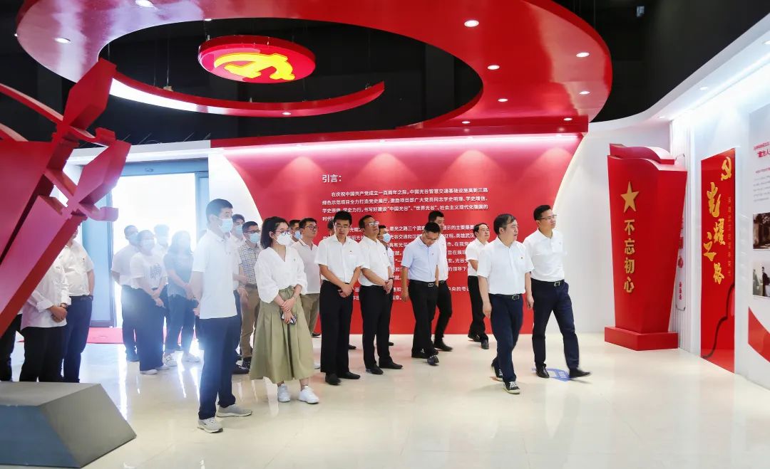 本次活動在漢陽市政高新三路黨建展廳拉開序幕,全體參會人員在講解員的帶領下,依次走過“光耀之路”、“榮光之路”、“星光之路”三個篇章,通過展板及影片放映,深刻感悟中國共產(chǎn)黨偉大的發(fā)展歷程、光谷三十年的跨越式發(fā)展、漢陽市政及光谷交通公司的崢嶸歲月。動員全體黨員在新征程中不忘初心、牢記使命,砥礪奮進、續(xù)寫華章。
